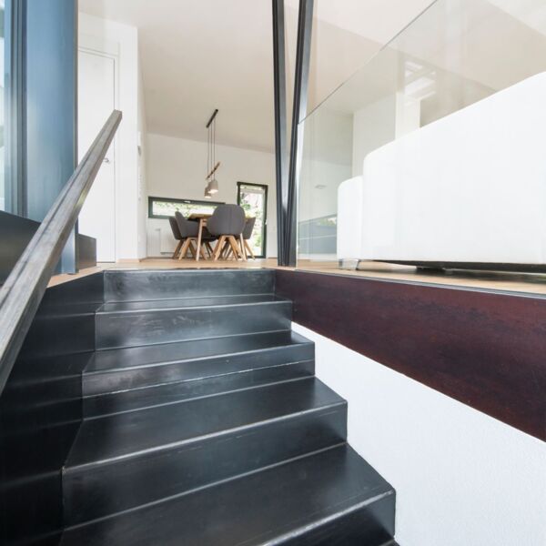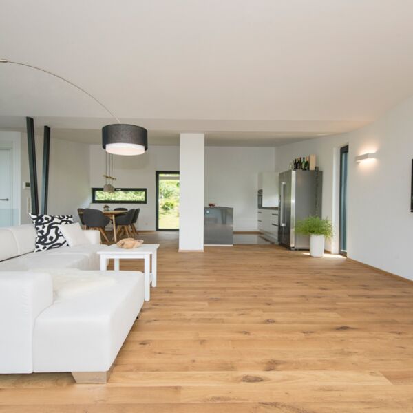 Die komplette Aufstockung wurde in Holzbauweise und mit ökologischen Baumaterialien errichtet, sehr gut gedämmt und mit einer wartungsarmen Fassade aus Trespaplatten verkleidet. Beheizt wird das komplette Gebäude mit einer umweltfreundlichen und CO2-neutralen Pelletsheizung. Die grosszügige Verglasung gen Süden ermöglicht die passive Solarenergienutzung.